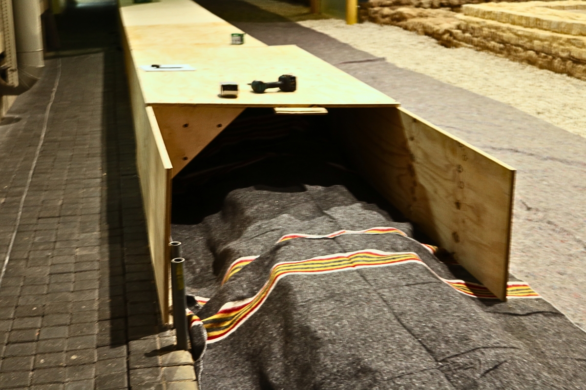 Een paar maanden geleden is een proefopstelling gemaakt om te testen of de bekisting sterk genoeg is. Maar ook om te controleren of de dekens er inderdaad voldoende voor zorgen dat de luchtvochtigheid en temperatuur minder schommelingen vertonen. Sinds de sluiting van het museum is op verschillende plekken in het gebouw meetapparatuur geplaatst om het binnenklimaat in de gaten te houden. En wat blijkt? Onder de dekens zijn de luchtvochtigheid en temperatuur wat hoger én stabieler. Precies wat het monument nodig heeft.