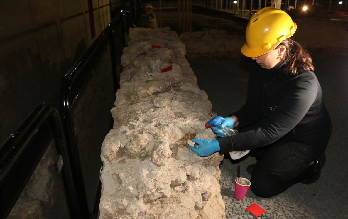 Ons topstuk van de collectie: het badhuis, dat in 2018 gerestaureerd werd, moet tijdens de sloop en nieuwbouw goed beschermd worden. We willen natuurlijk voorkomen dat het 2000 jaar oude monument beschadigt vanwege vallende stenen of trillingen die worden veroorzaakt door de zware machines. Maar ook schommelingen in luchtvochtigheid en temperatuur zijn gevaarlijk. We merkten al dat een jaar leegstand van het gebouw gevolgen heeft voor het binnenklimaat. En dat wordt natuurlijk nog uitdagender zodra de buitenmuren gesloopt worden.