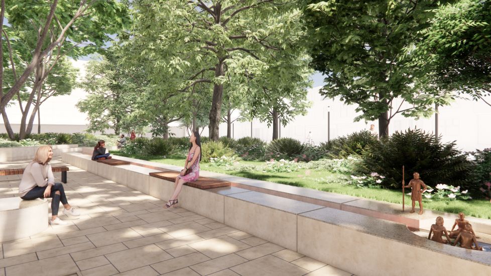 Het Raadhuisplein is inmiddels heringericht. In het nieuwe ontwerp staat de Romeinse geschiedenis centraal. Er zijn bankjes in Romeinse maten, inscripties en bronzen beelden van de oudst bekende Heerlense Romeinen. Aan de kant van het raadhuis staat een stenen tribune die uitkijkt op een Romeinse mozaïekvloer met afbeeldingen van de Romeinse vondsten van het Raadhuisplein. De mozaïekvloer verwijst daarnaast naar de waterloop die de Romeinen aanlegden, tussen de Caumerbeek en de Geleenbeek, waarmee het badhuis van water werd voorzien.